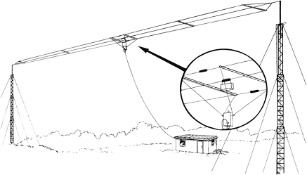 這種懸掛架設(shè)方式提供標(biāo)準(zhǔn)的360°全方位輻射,適用于中心站對(duì)不同方向分站的通信,并兼顧了水平極化波和垂直極化波,對(duì)使用水平天線的車載臺(tái)或背負(fù)臺(tái)都有很好的效果。