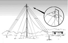 兩側(cè)支架高為1/4波長(zhǎng)時(shí)效果好。(列如:F=10Mhz,支架高度約7.5米).